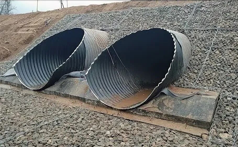 Блоки бетонные для гофрированных труб используются для отвода воды под дорогой. Материал блоков фундамента и экрана — бетон класса В20 по ГОСТ 26655-2012, морозостойкость F200 и выше в зависимости от климатических условий района строительства водонепроницаемость W6, Арматура по ГОСТ 5781-82 класс А-I , марки СТ3сп по ГОСТ 380-2005
