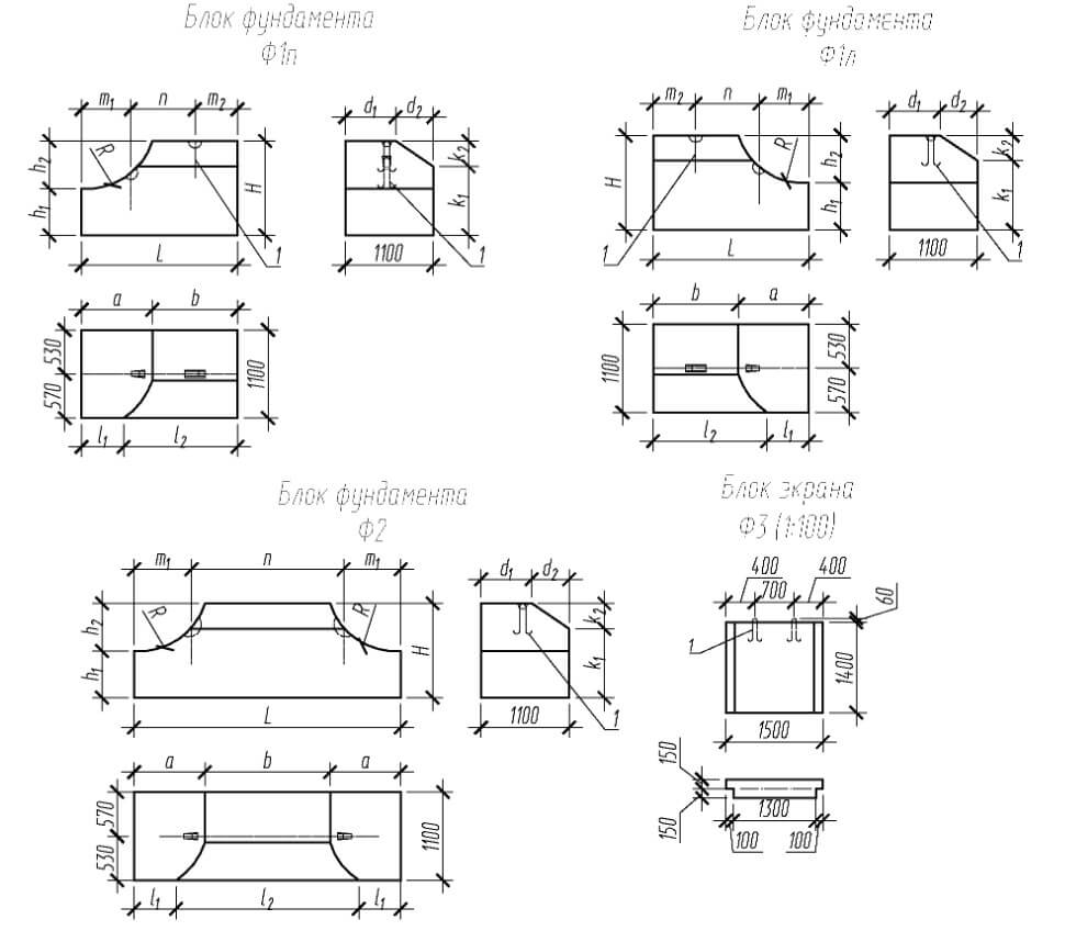 Расшифровка маркировки: Ф(фундамент)1(односторонний) или 2(двухсторонний) п.(правый)л.(левый)-10(диаметр монтируемый трубы в дециметрах)-130(длина блока в сантиметрах)